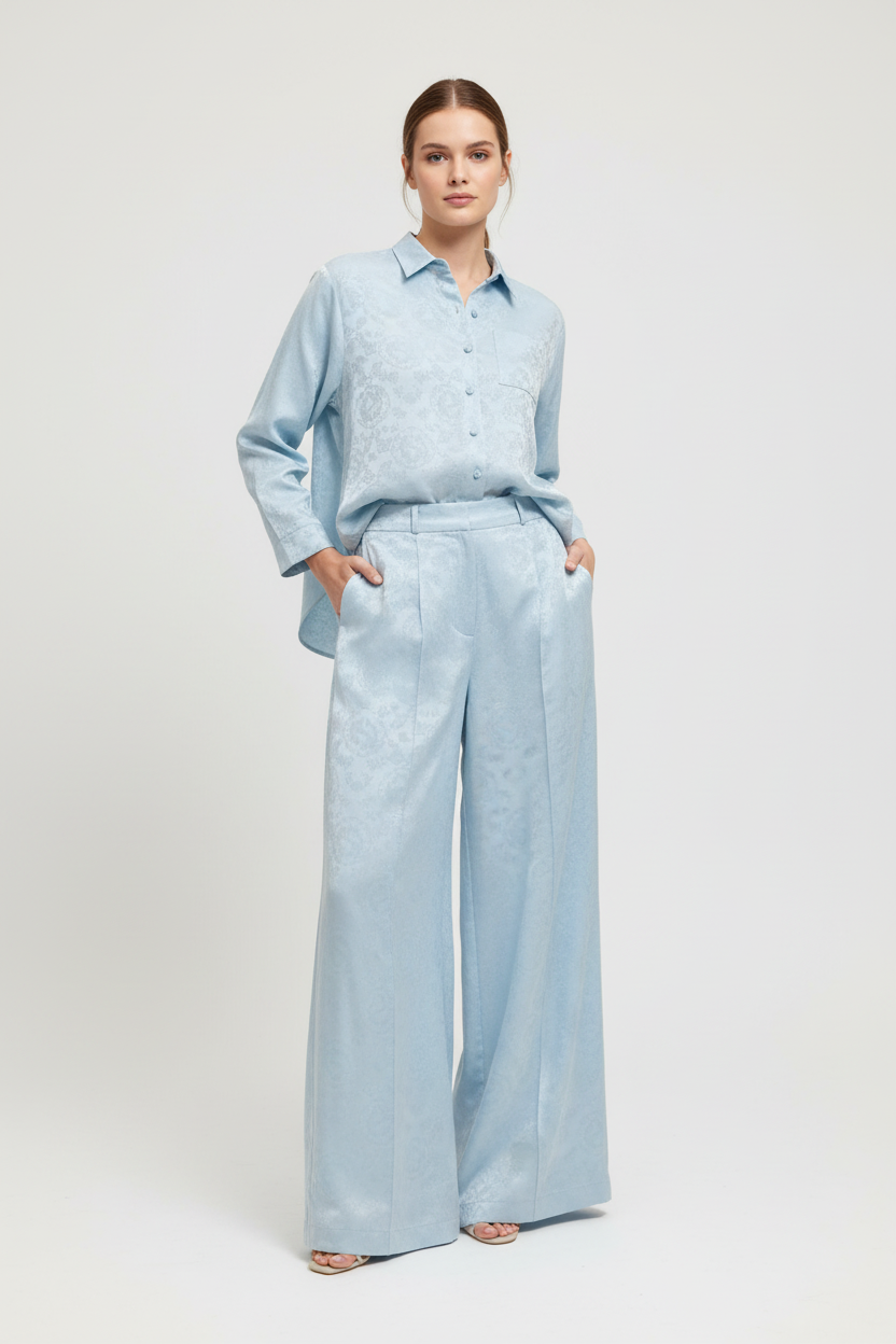 A151- Áo Dài Lụa Tiêu Giao In Blue | Áo Only