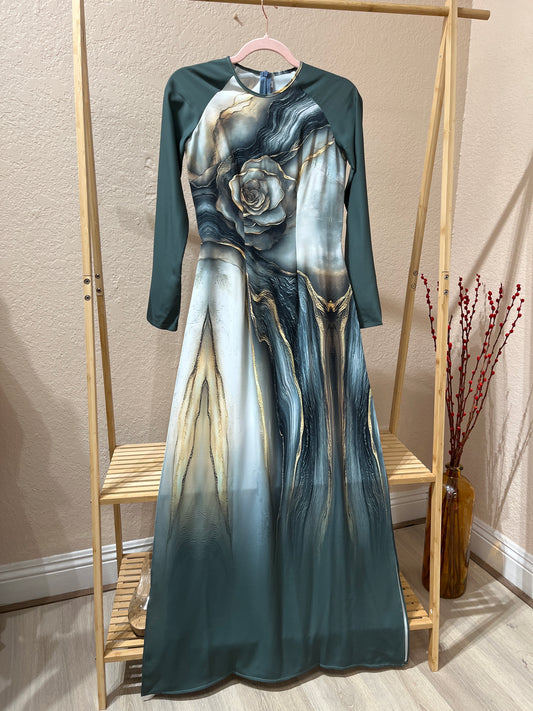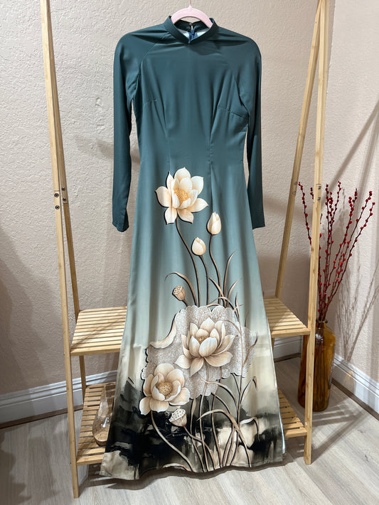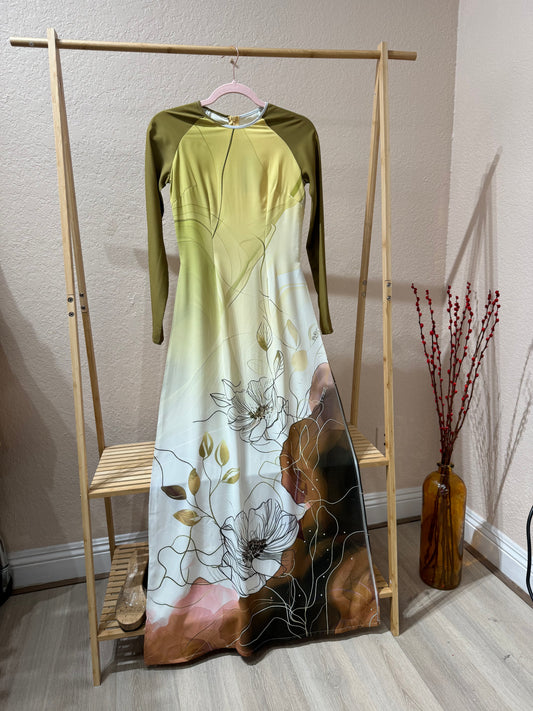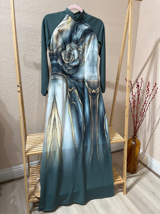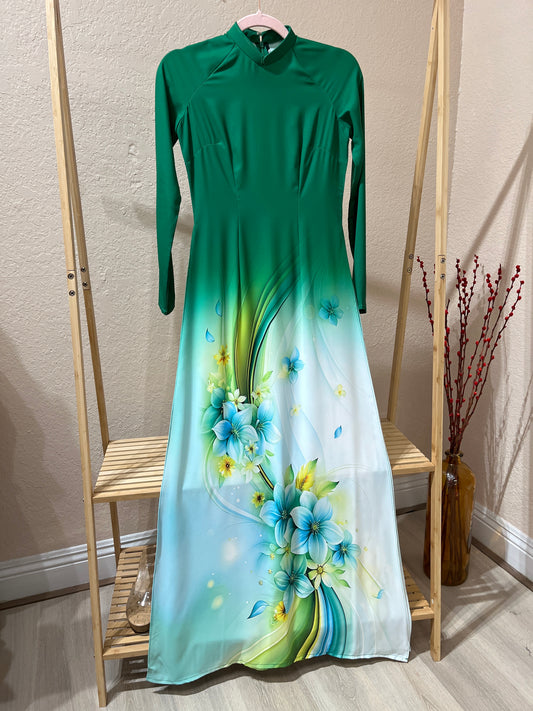 A13 - Áo Dài Chiffon 4 Tà Kết hạt cùng tông Green. Final sale (no return/exchange).