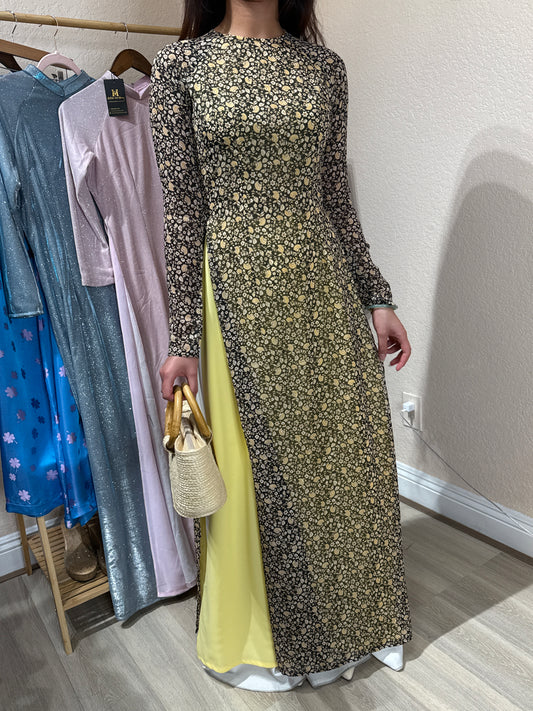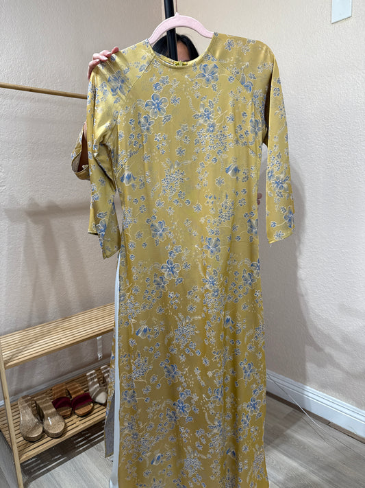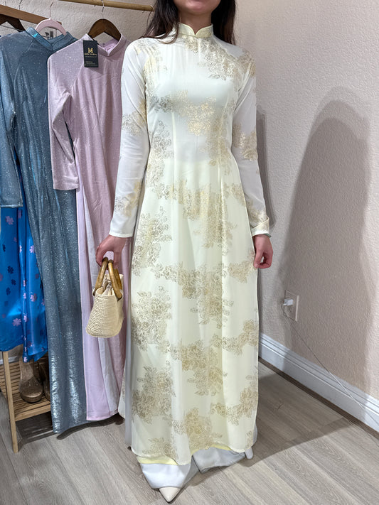 A15 - Áo Dài Chiffon 4 Tà Kết hạt cùng tông Yellow. Final sale (no return/exchange).
