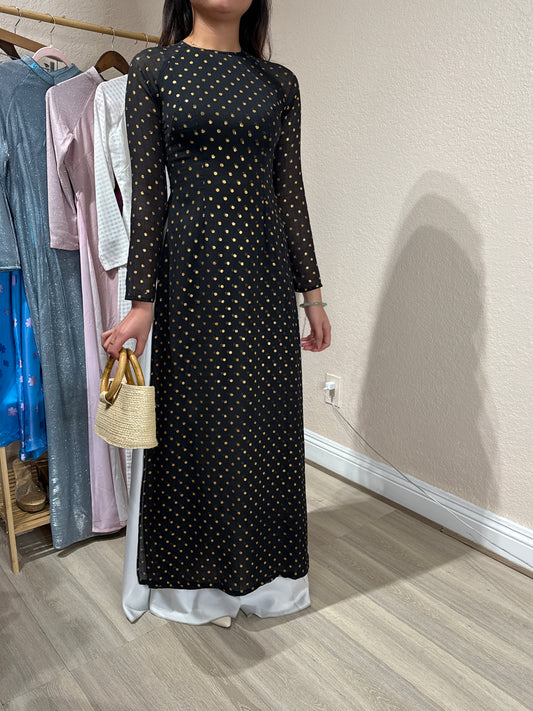 A17 - Áo Dài Chiffon 4 Tà Kết hạt cùng tông Black. Final sale (no return/exchange).