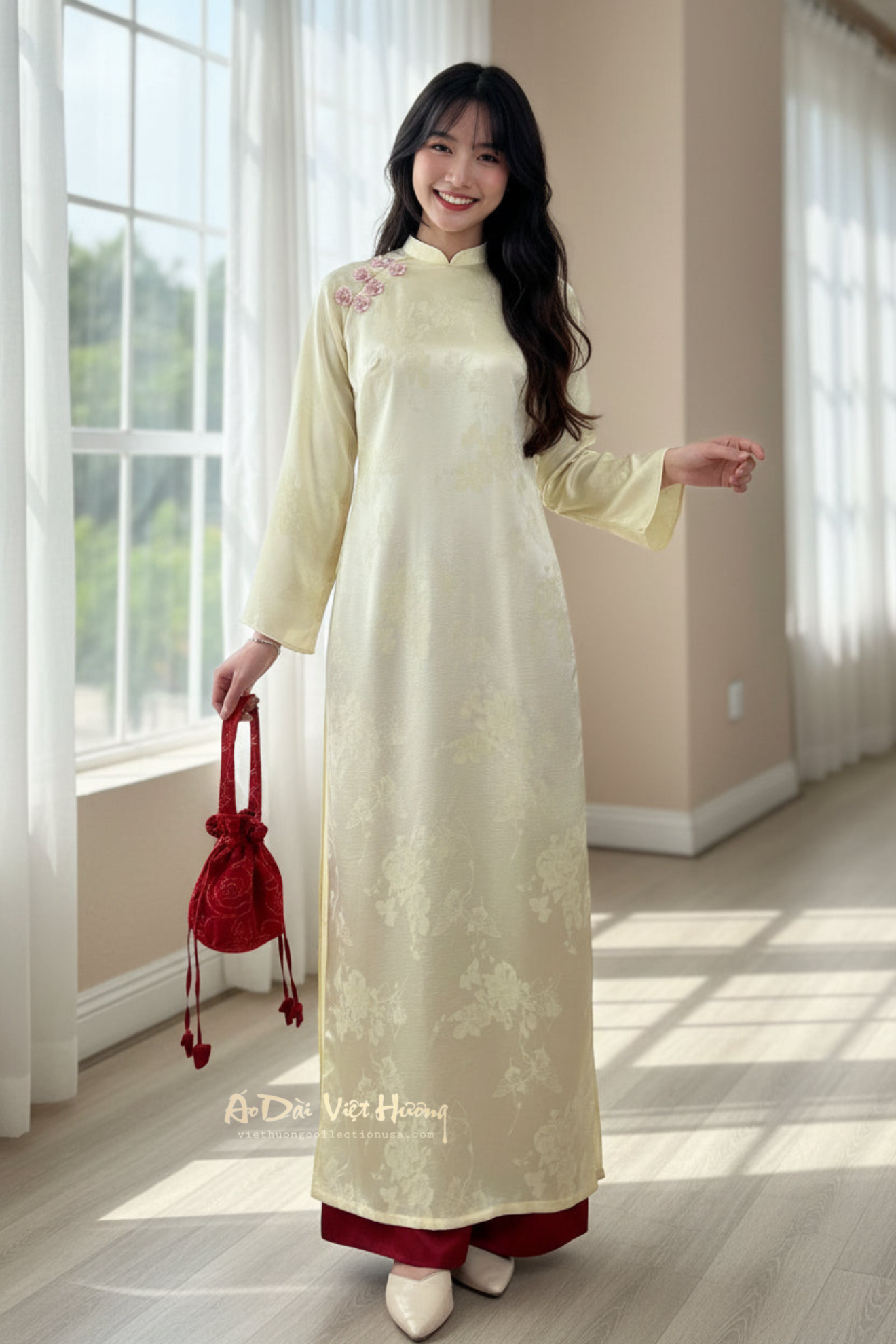 A11 - Áo Dài Dáng Suông Lụa Vàng Mỡ Gà