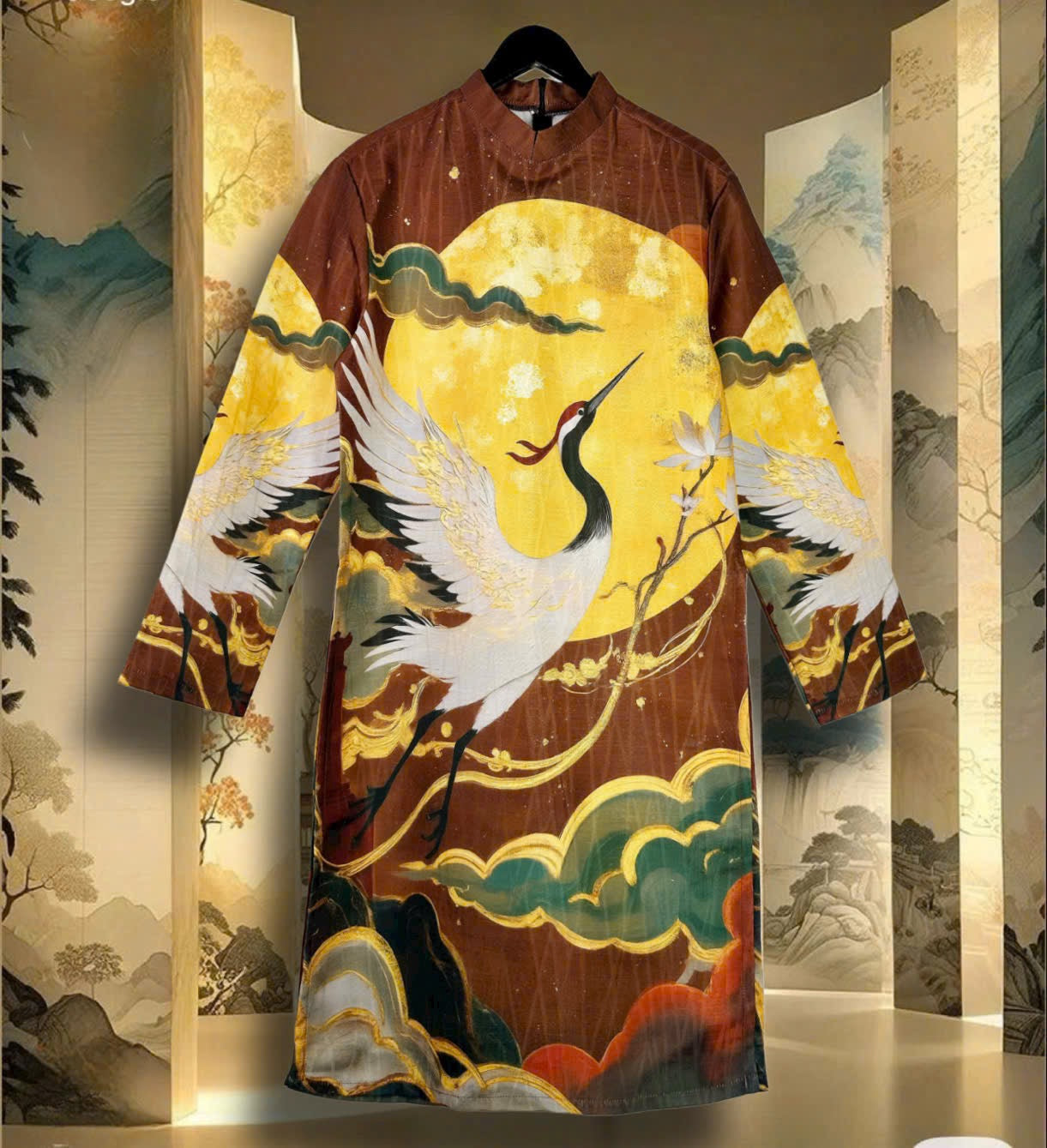 Choose a size with measurements larger than your own, as men’s áo dài should be worn in a loose style rather than fitted to the body.