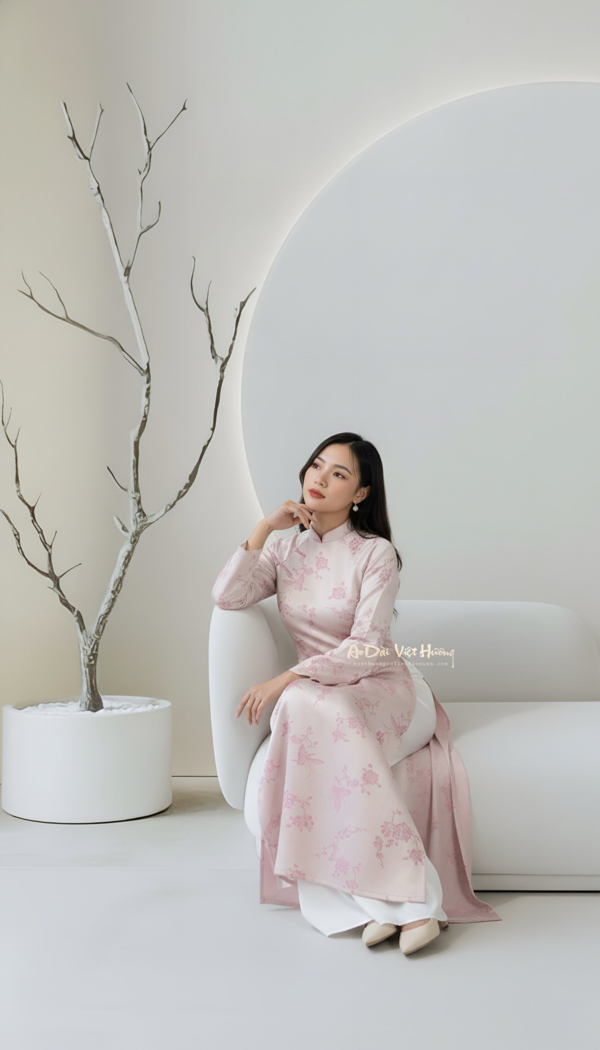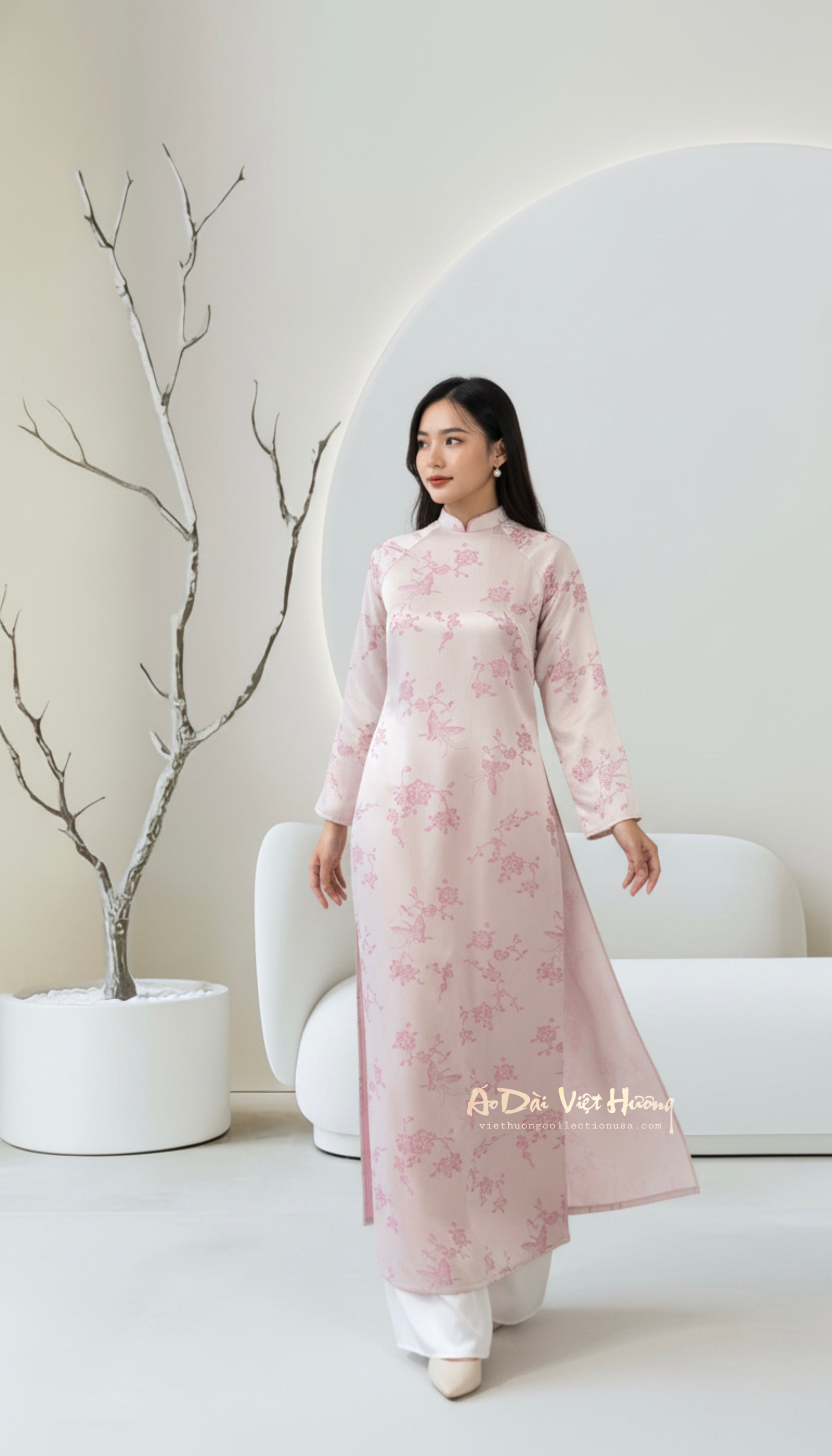 A20 - Áo Dài Cách Tân Suông Gấm Hồ Điệp Vân Nổi