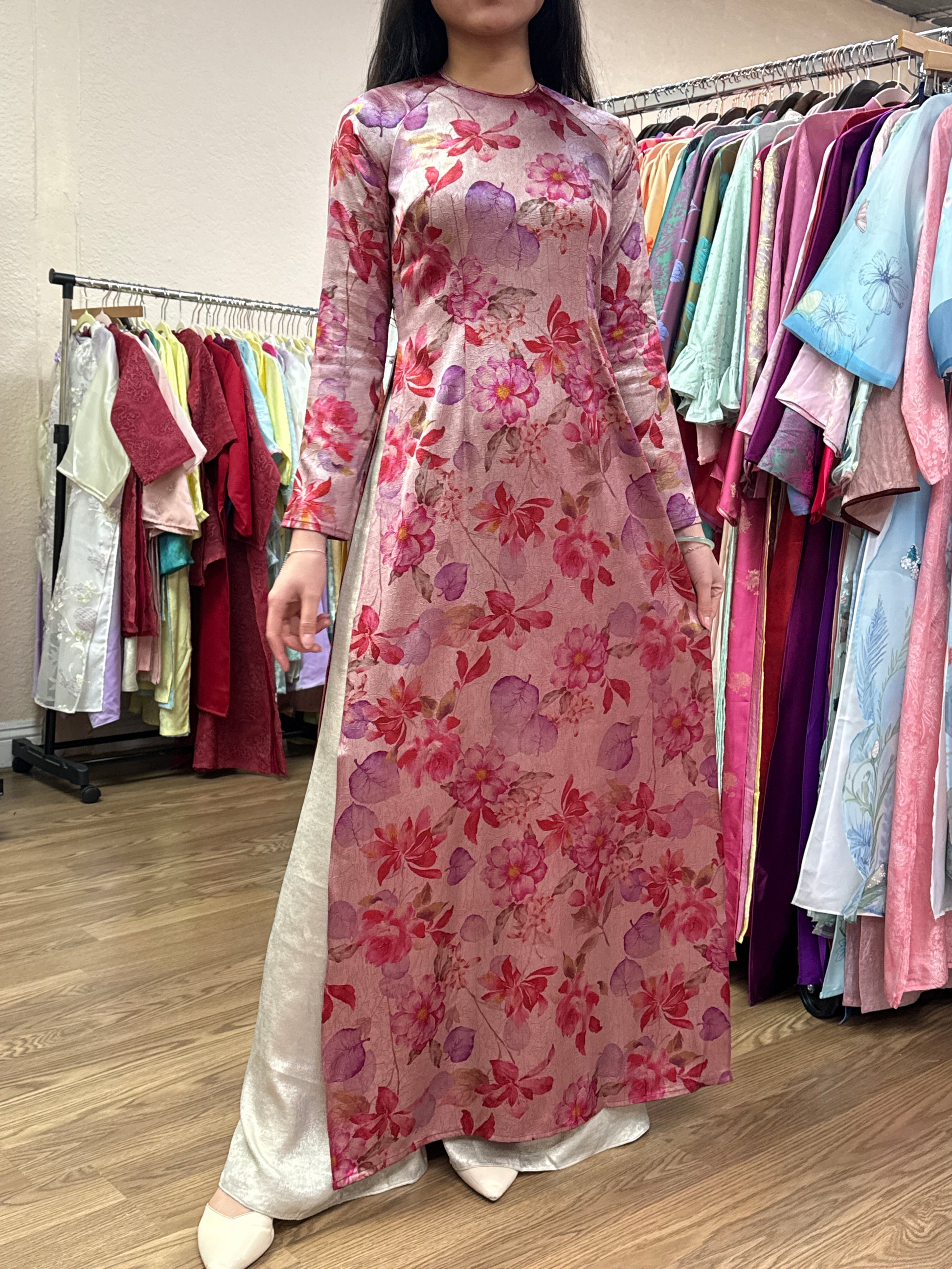 A33 - Áo Dài Lụa Tiêu Giao Xà Cừ Đỏ | Áo Only