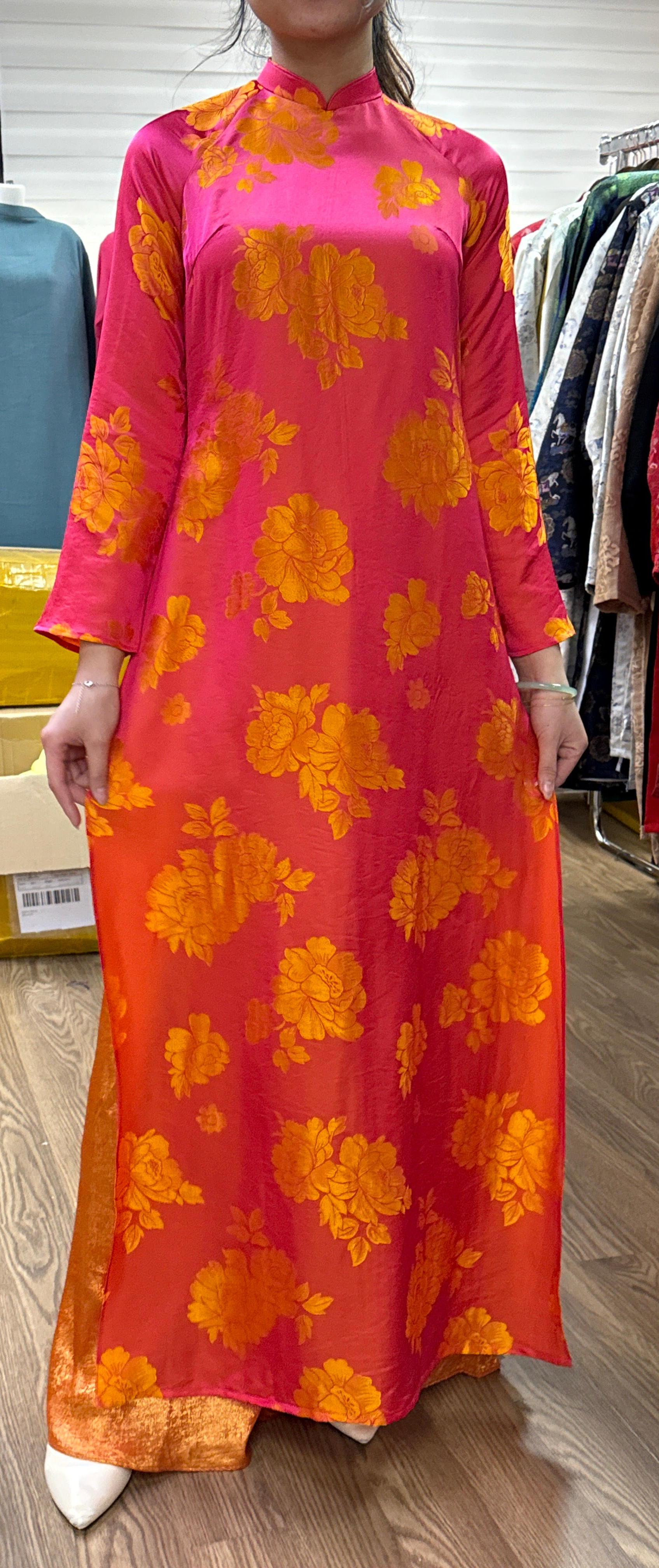 A40 - Áo Dài Dáng Suông Suông Lụa Tằm Pha Hồng/Cam