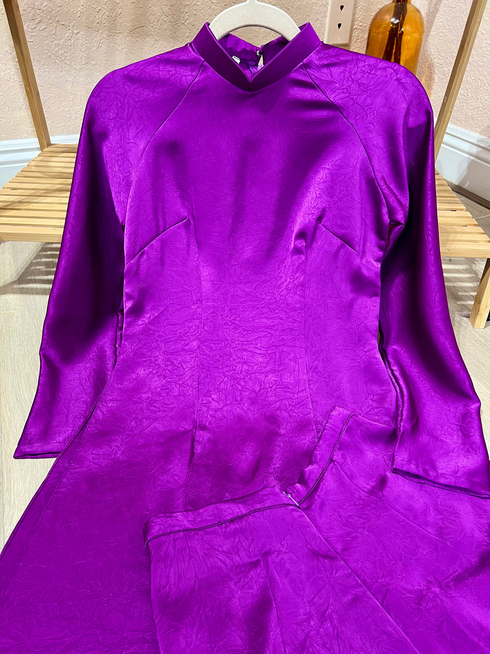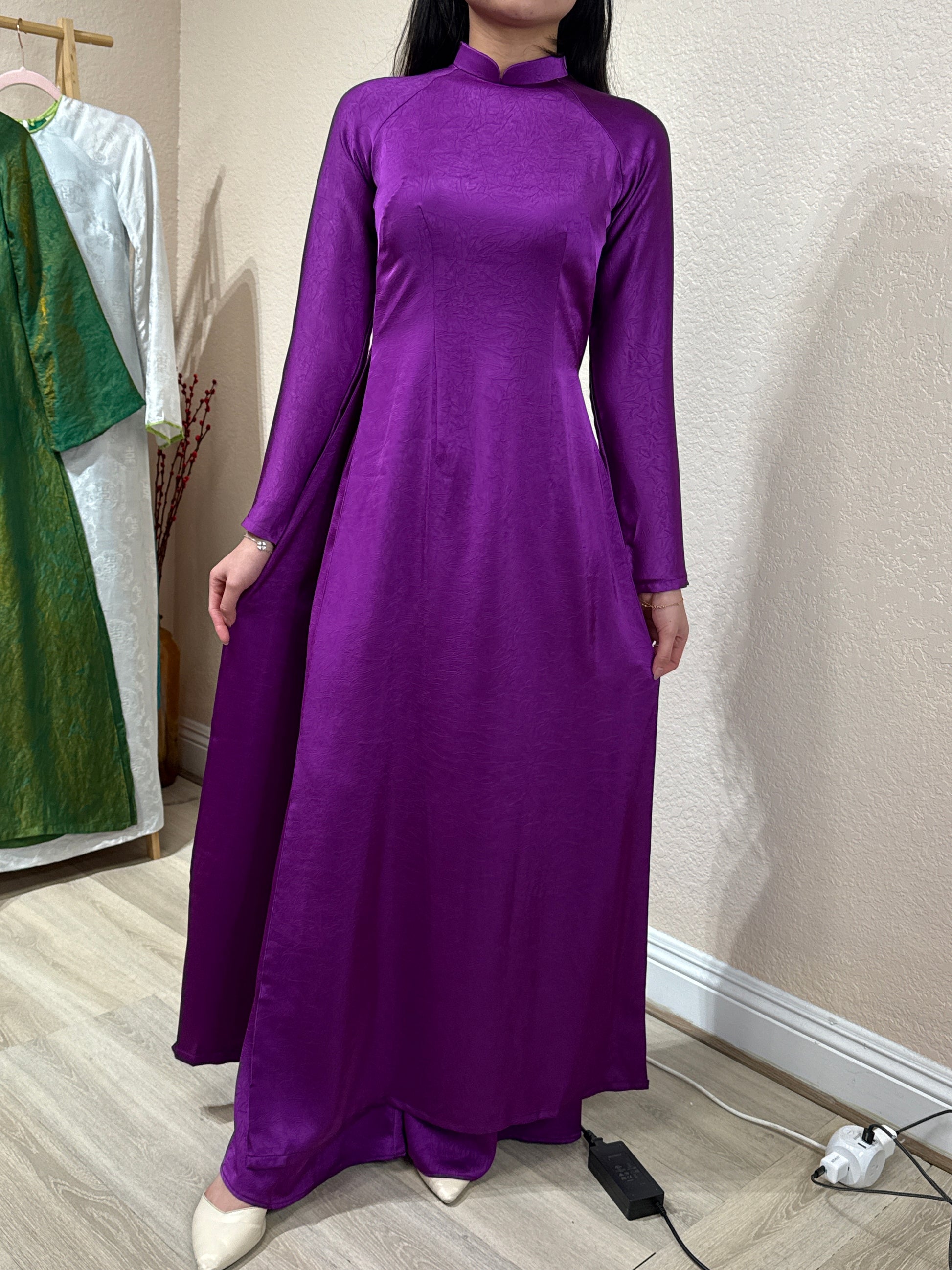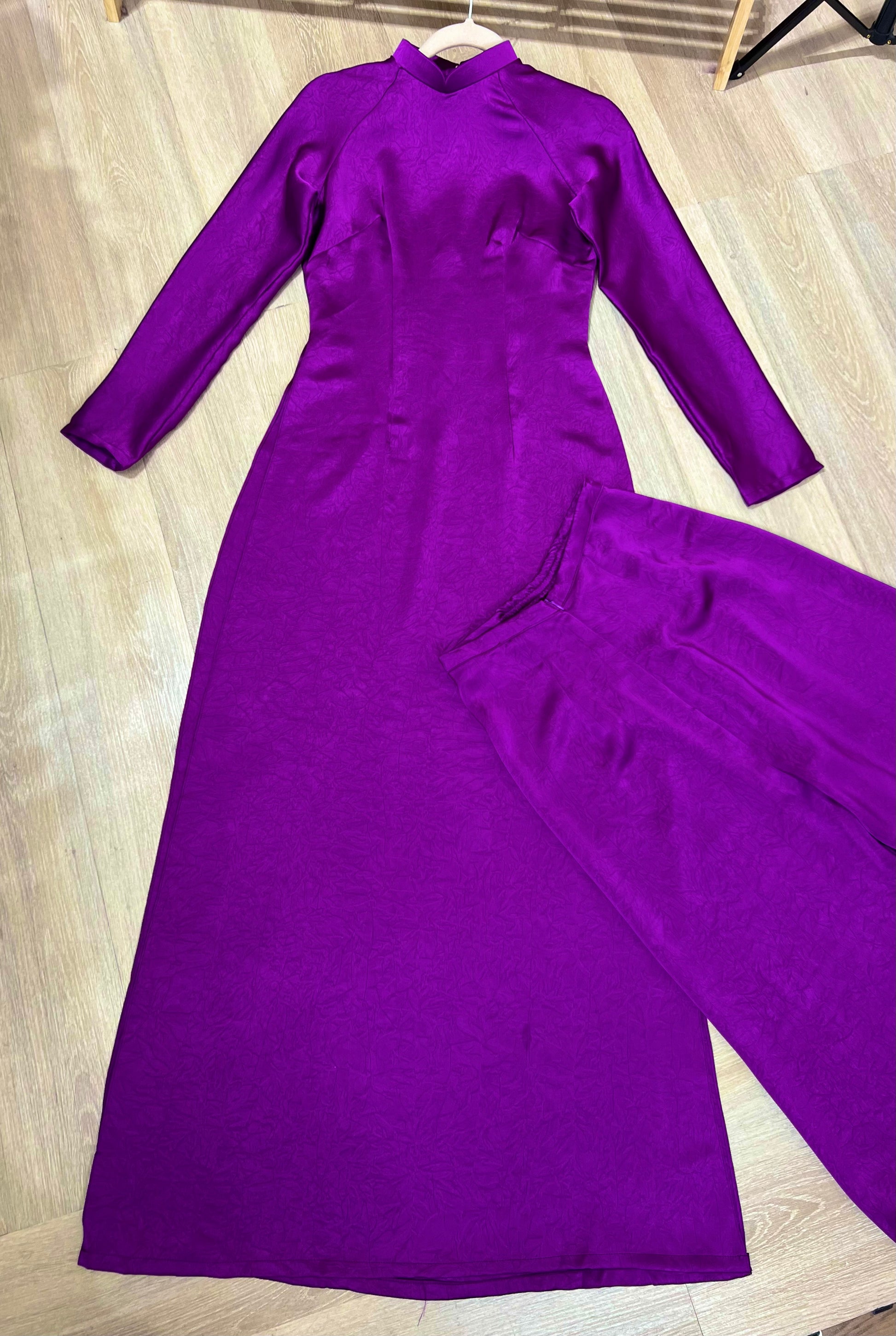 A43 - Set Áo Dài lụa Tiêu Giao Tím (Cổ 2cm)
