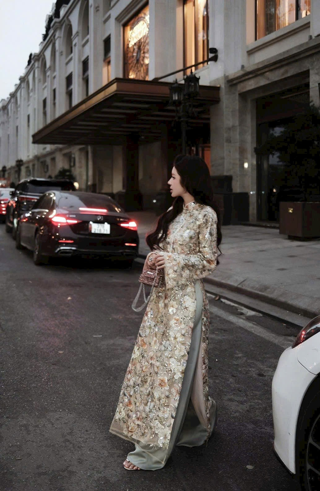 A51 - Set Áo Dài Sequin Nude/Green (kèm quần Nhũ)