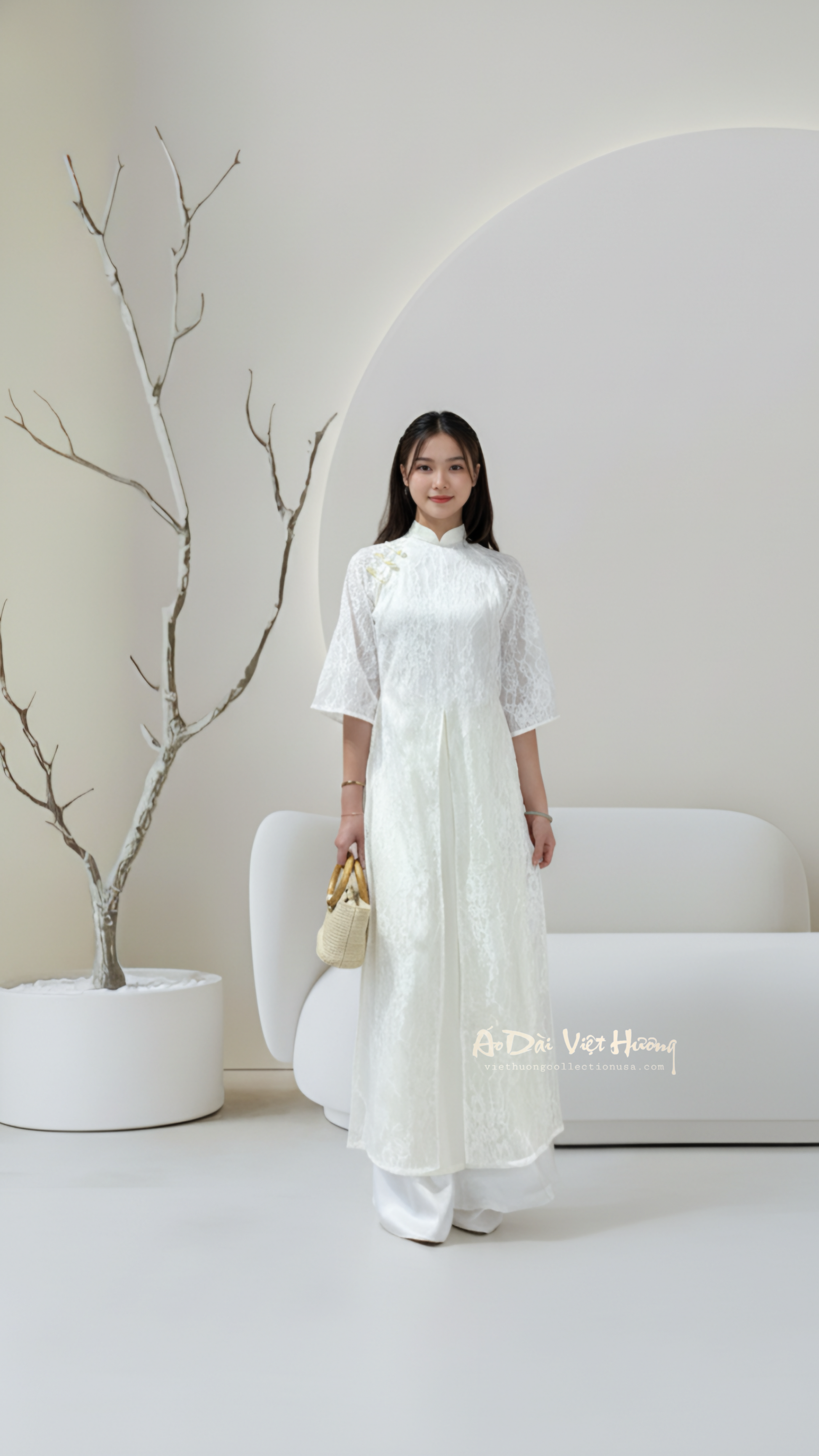 A97 - Áo Dài Tứ Thân Ren Cách Tân Kem 4 Tà