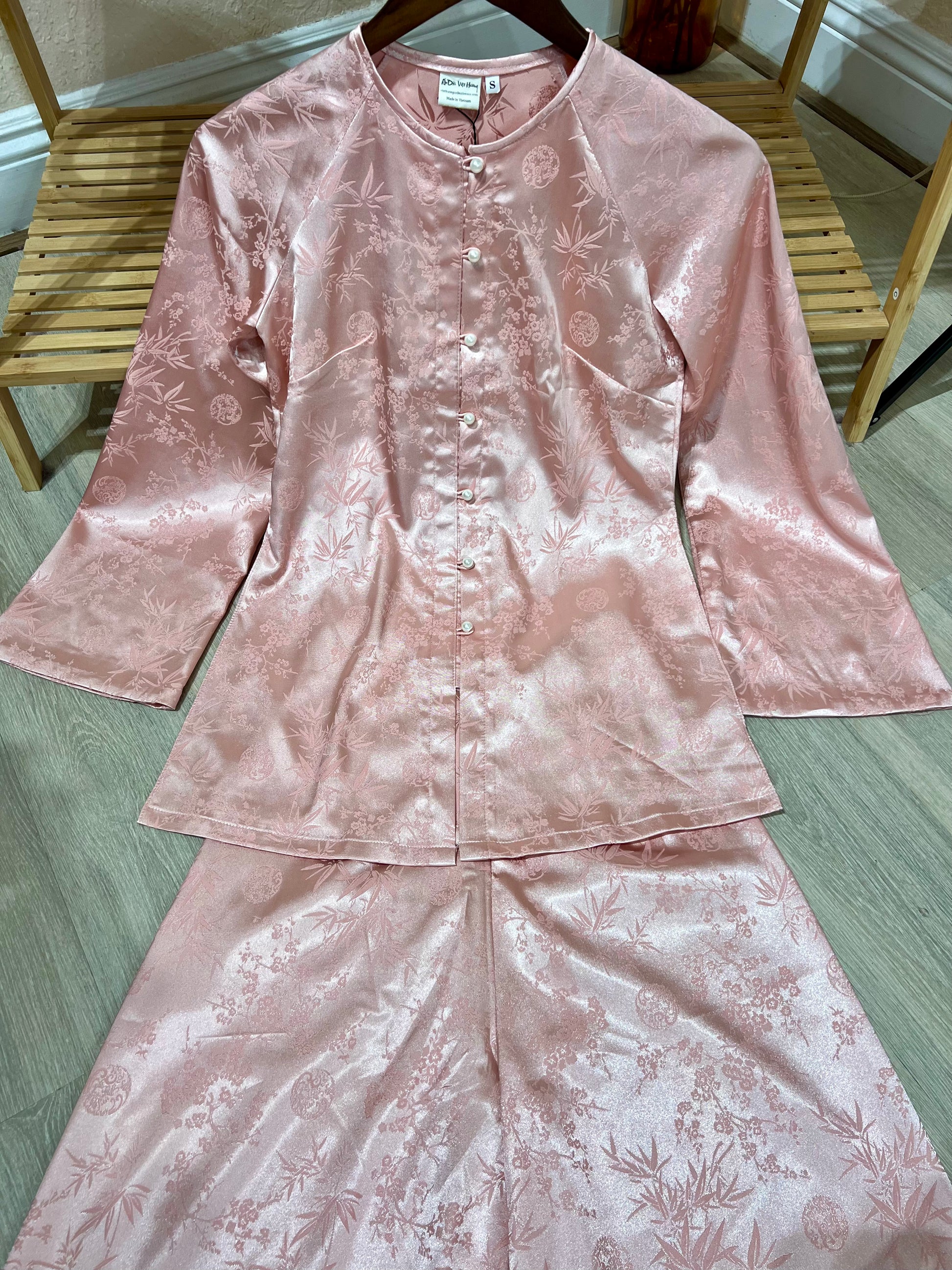B05 - Set Áo Bà Ba Gấm Trúc Đào Hồng | Kèm Quần