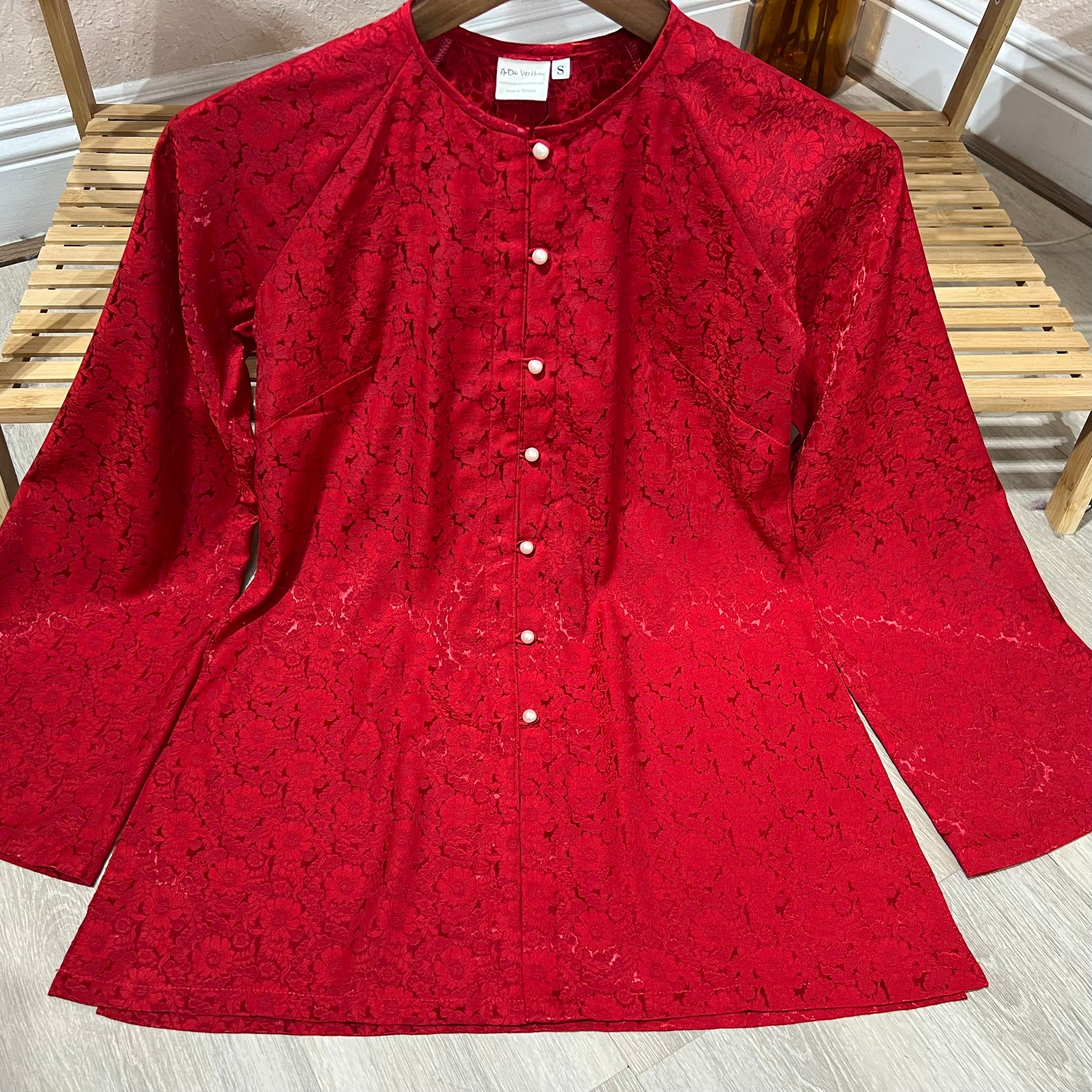 B06 - Áo Bà Ba Gấm Hoa Cúc Đỏ