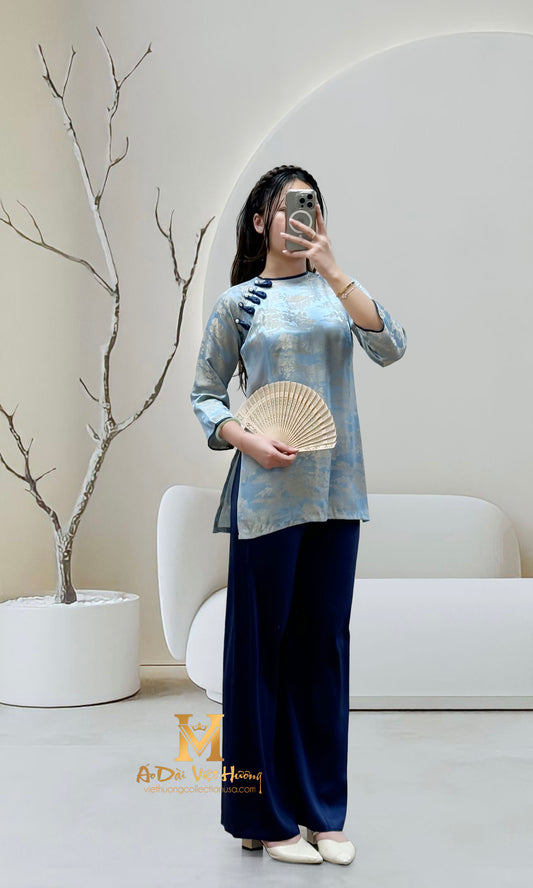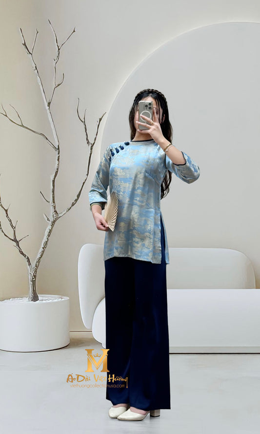 B2 - Áo Bà Ba Gấm Lụa Thiên Cúc Blue Teal