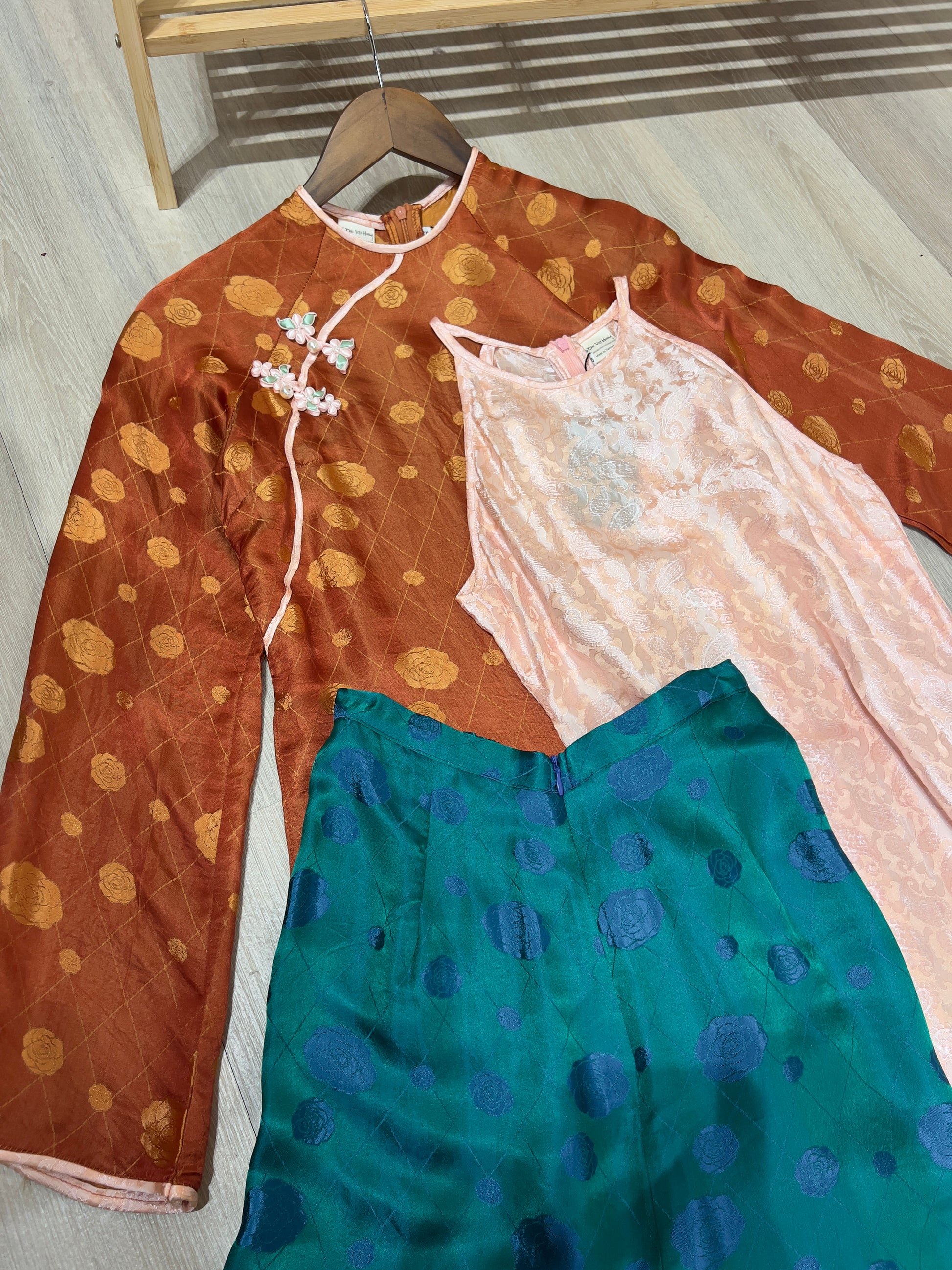 A07 - Set Áo Dài Tơ Tằm Nha Xá Hoa Trà + Yếm + Quần