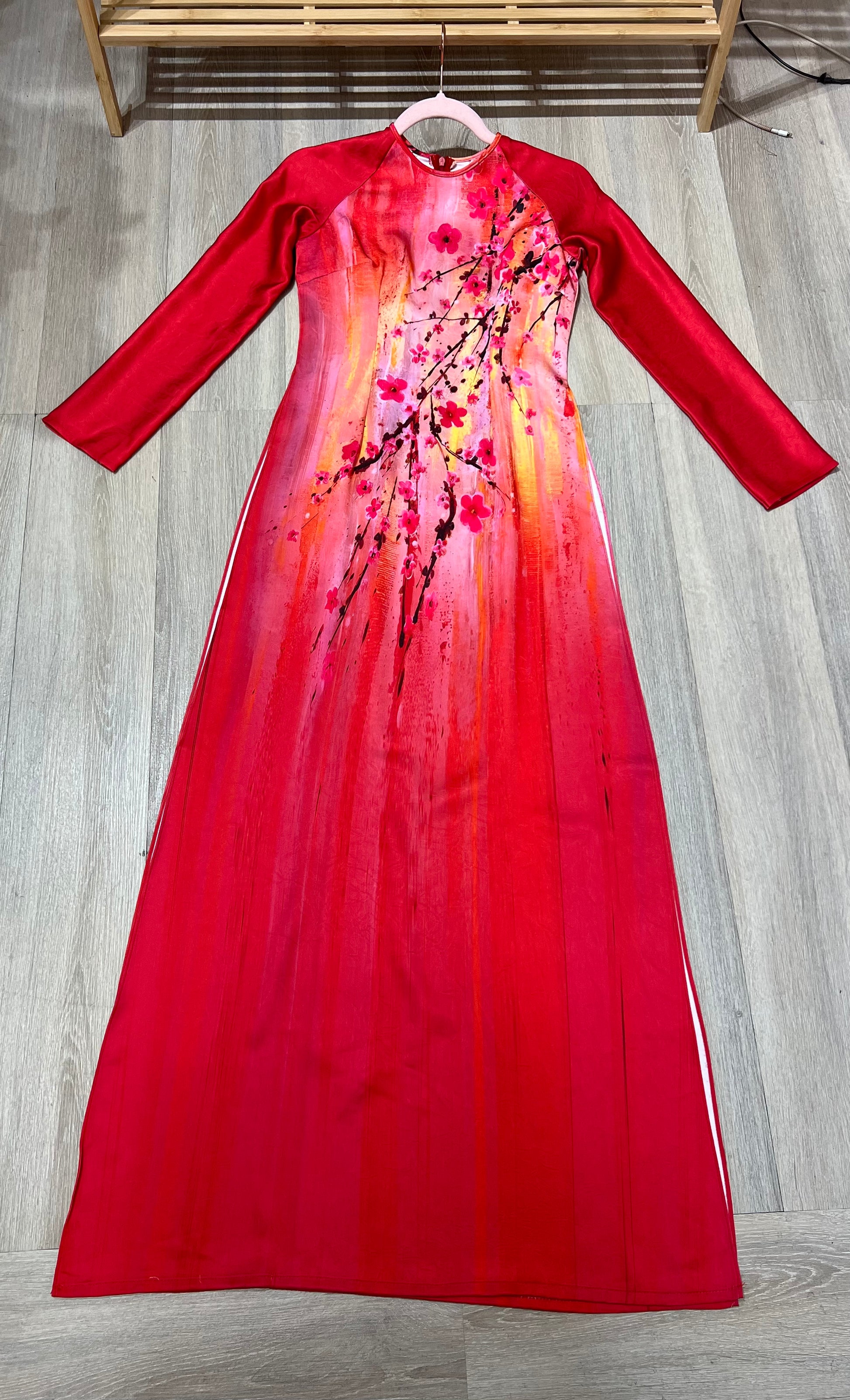 A153 - Áo Dài Lụa Tiêu Giao Đỏ in Hoa | Áo Only