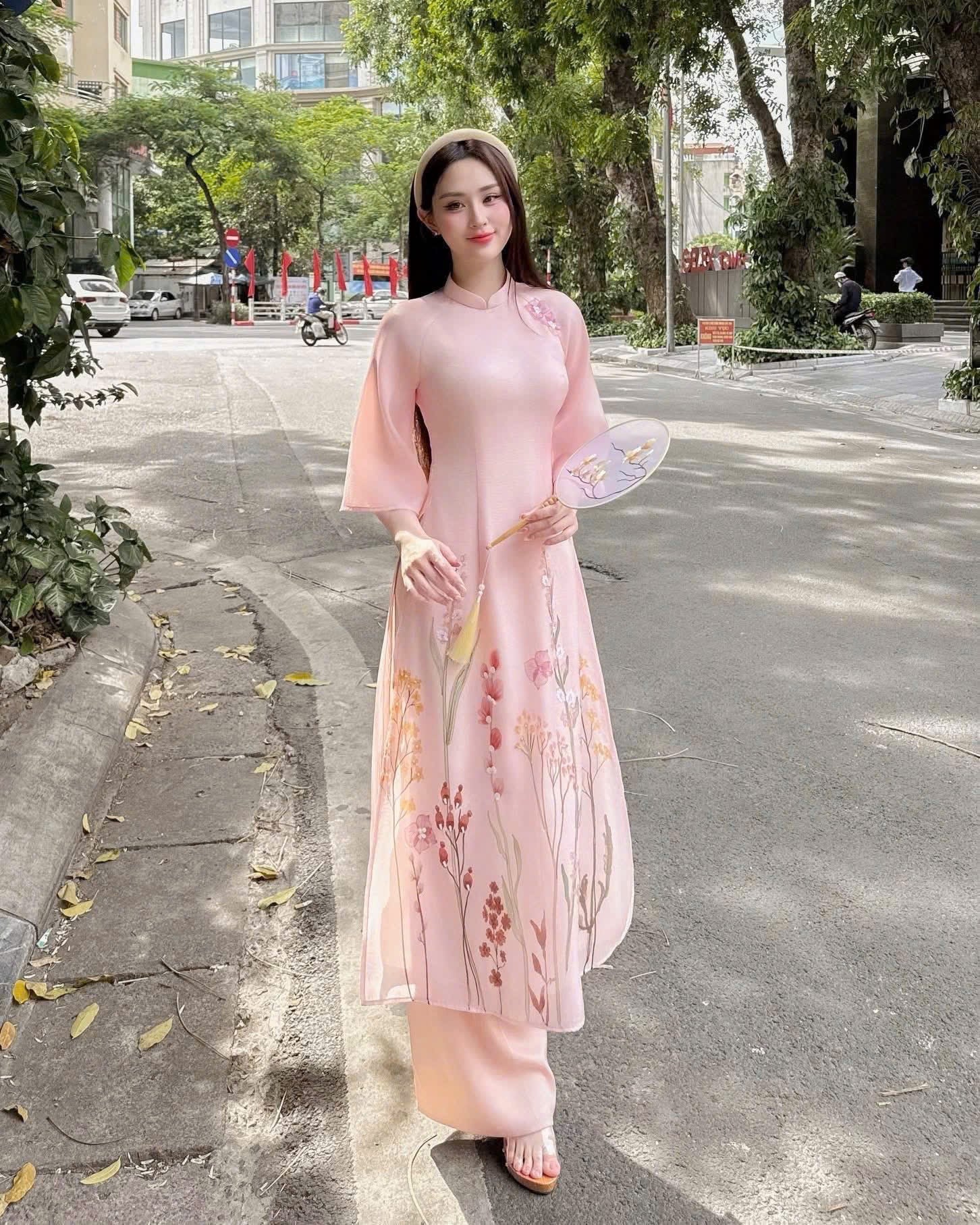 A22 - Set Áo Dài Cách Tân Hồng Pastel (kèm quần)