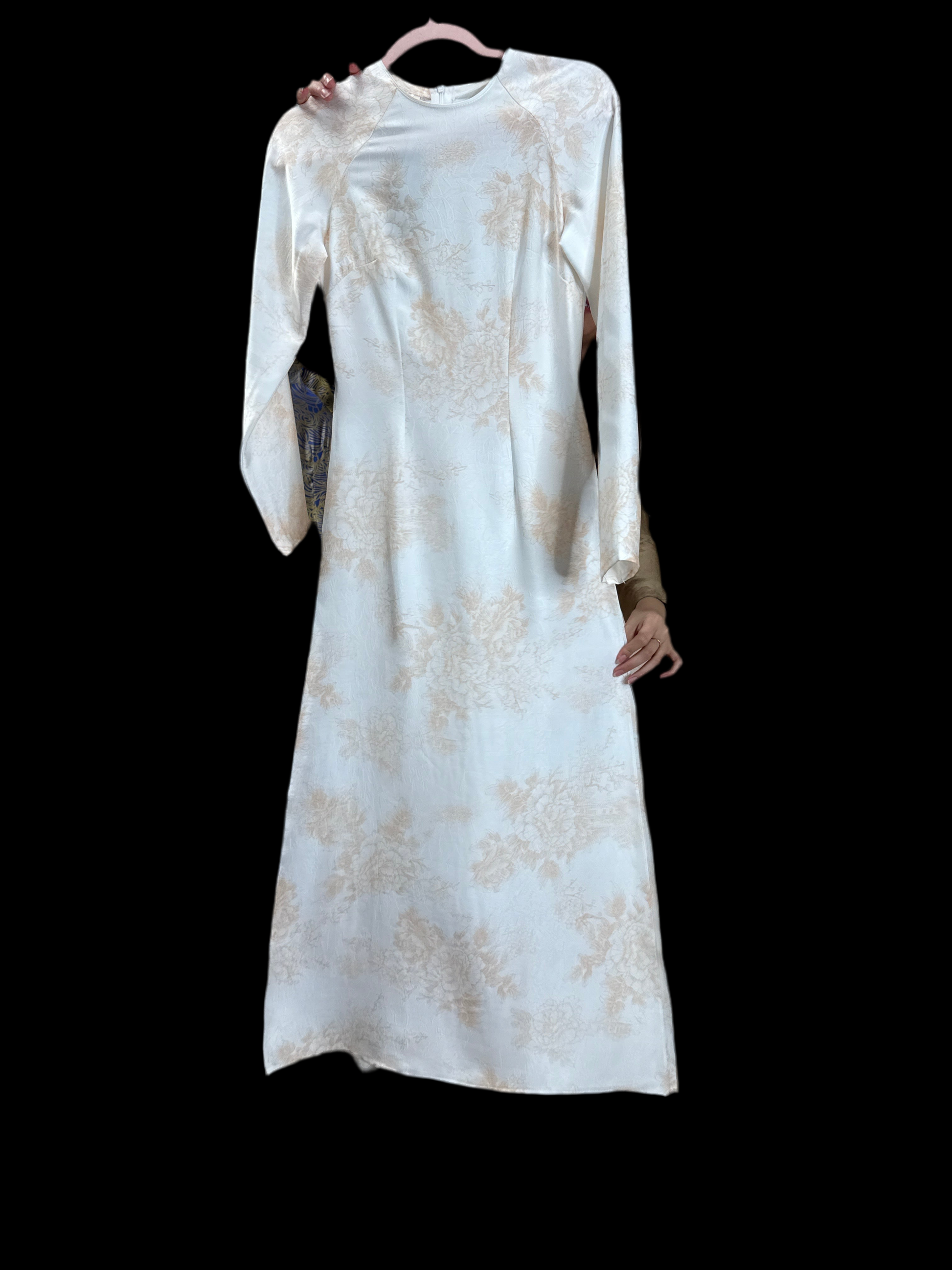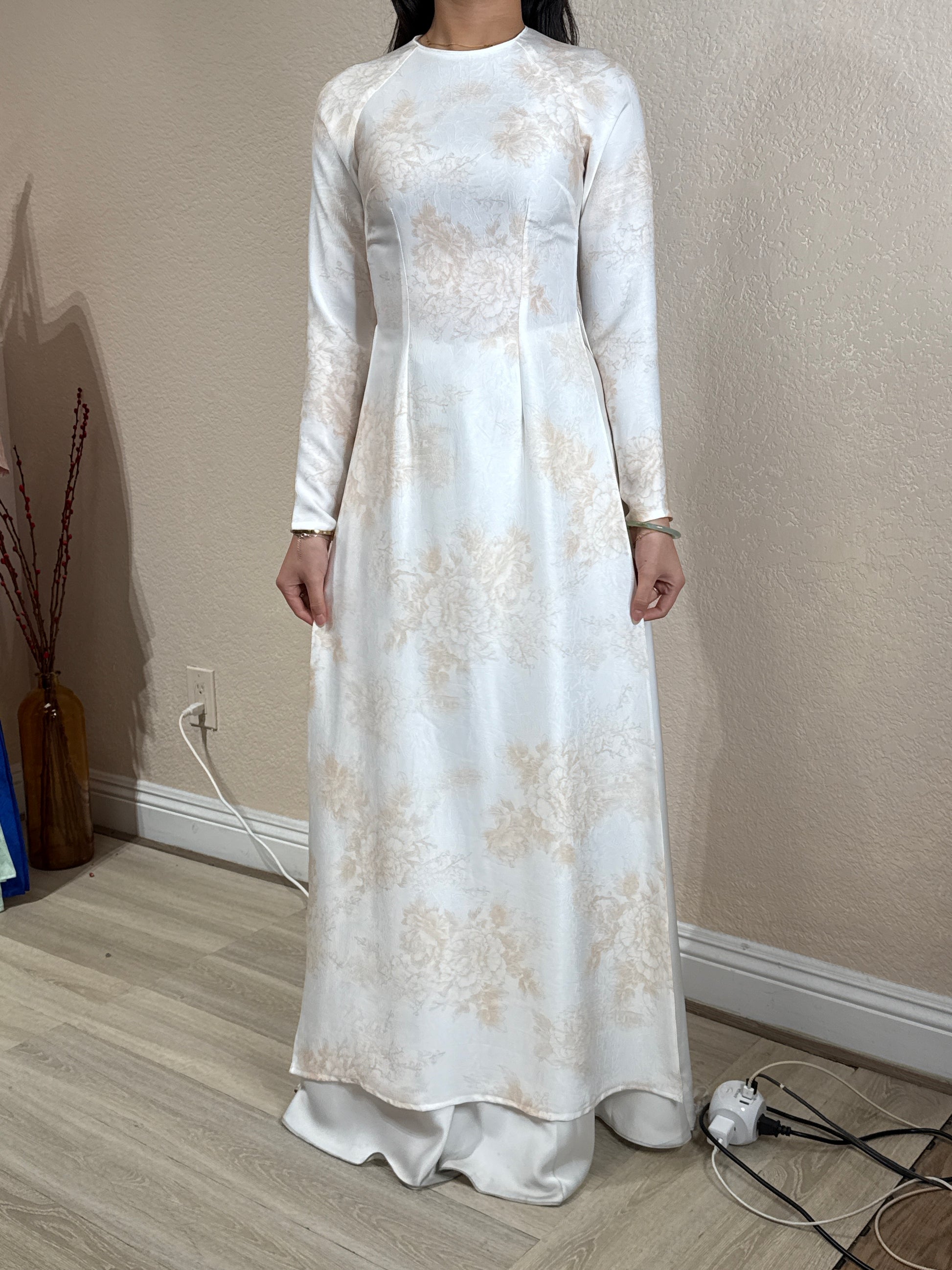 AD26 - Áo Dài Lụa Tiêu Giao Trắng Kem