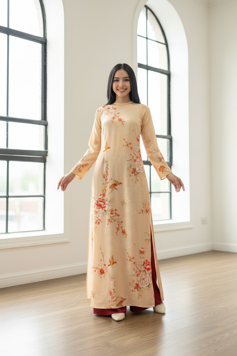 A77 - Áo Dài Lụa Tô Châu Cam Nhạt