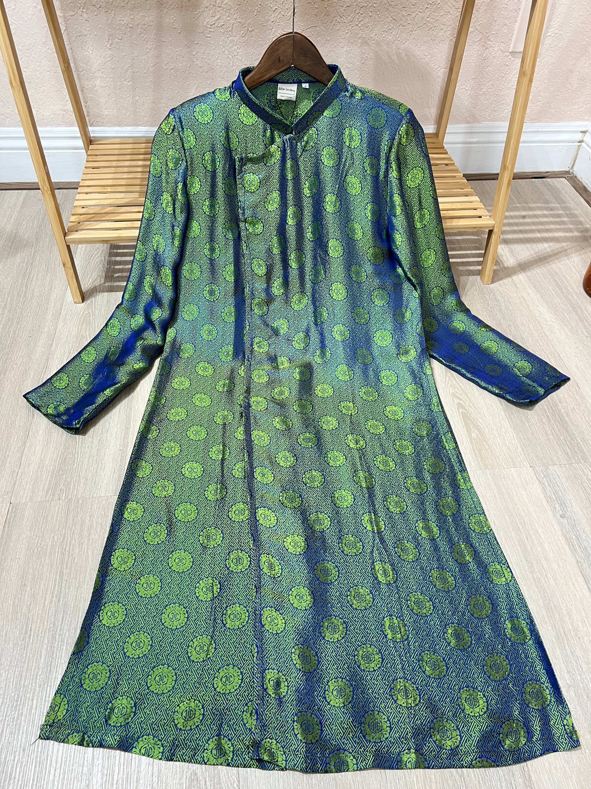 A84 - Men’s Áo Dài Nha Xá Silk Blue/Green