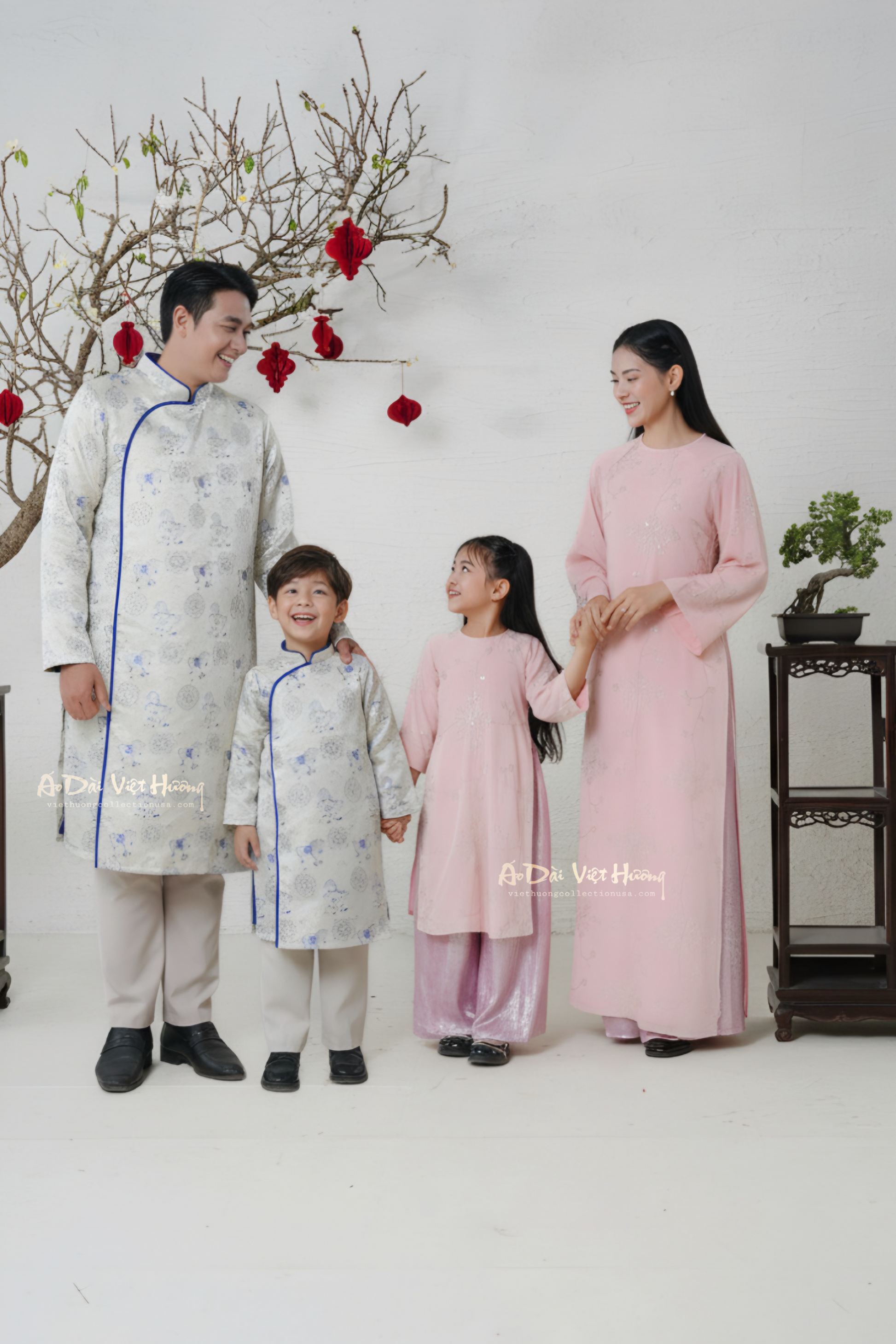 D16 - Girl’s Set Áo Dài Bé Gái (kèm quần nhũ hồng)
