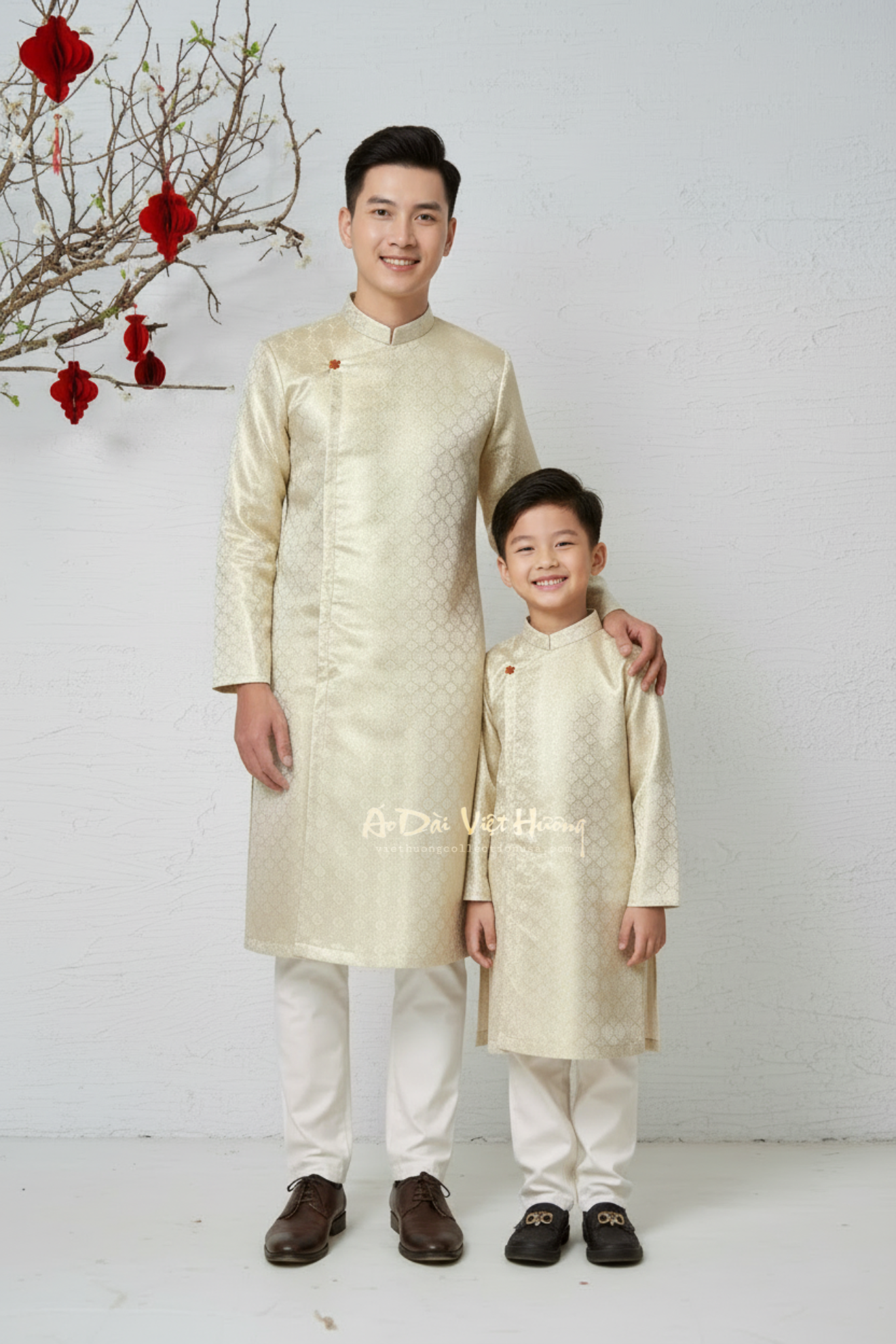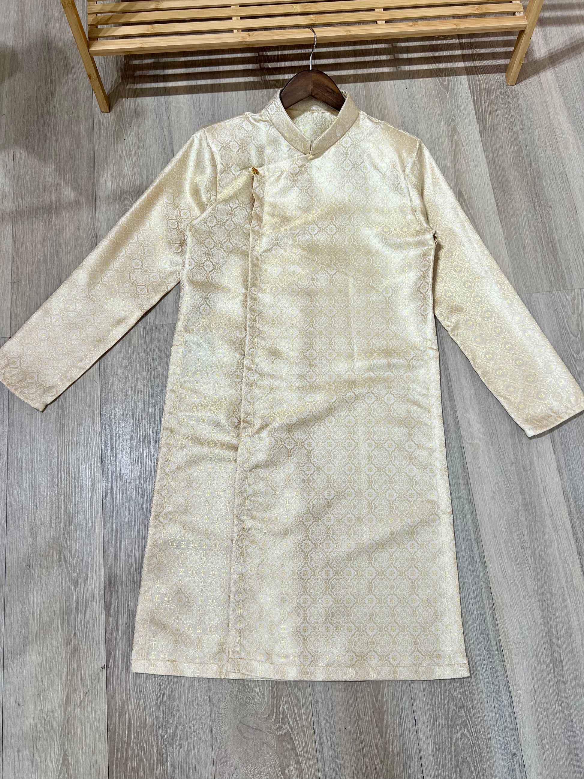 D1 - Men’s Áo Dài Gấm Dệt Kem ánh Gold